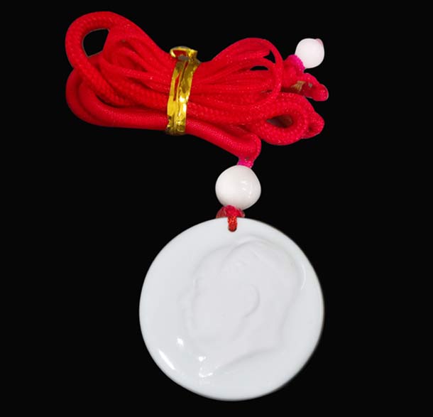 毛澤東主席浮雕瓷像徽章以紅色雕塑家張松鶴1965年創作的毛澤東主席浮雕瓷像為母版,經微縮浮雕后采用高溫施釉與素燒相結合的方法,選用當年制作毛澤東主席生活用瓷的珍貴原料“大球泥”精制而成。