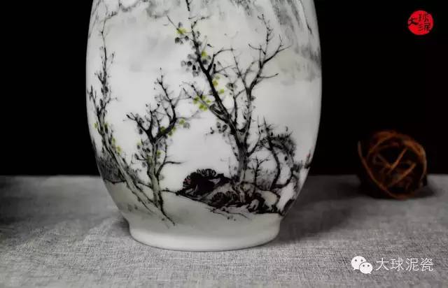《江南春早》瓶,構(gòu)圖開(kāi)闊,氣勢(shì)磅礴,韻律和諧,經(jīng)過(guò)高溫?zé)贫傻拇笄蚰啻筛菨嵃谉o(wú)瑕,晶瑩剔透,呈現(xiàn)出飽和富麗的色彩。