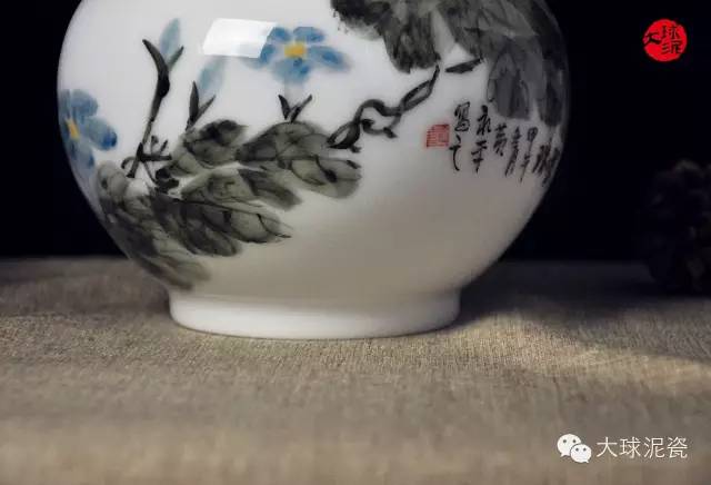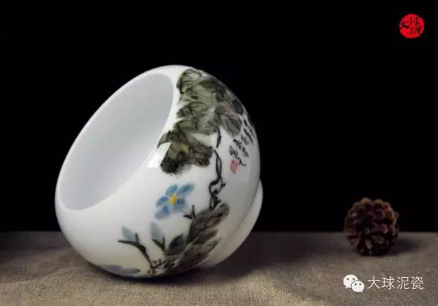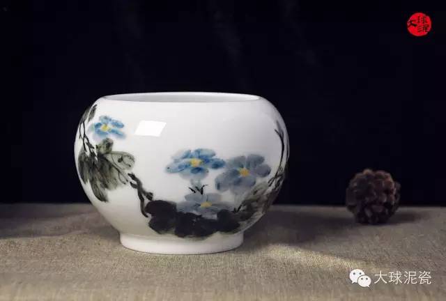 《露珠》小缸,釉下五彩技藝制成,手拉胚,畫面既有渾厚大氣的美感,同時(shí)也蘊(yùn)含幾分生動(dòng)和靈趣,營造無數(shù)美妙。清麗素雅,富有光澤,瑩潤而剔透,具有空曠神怡的視覺享受,讓人愛不釋手!