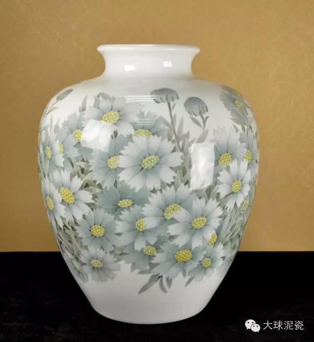 《波斯菊》瓶由國家級工藝美術大師陳揚龍先生(已故)創作于2006年,圓身鼓腹,短頸,口沿外撇,線條如行云流水般流暢。采用釉下五彩燒制工藝,畫面光亮平滑,清雅明快,晶瑩潤澤,具有飽滿的水份感。波斯菊花期本在6-8月,《波斯菊》瓶的存在打破了這種時間上的限制,讓它能夠在任何時間都能擁有怒放的生命。只見瓶身上大片大片的波斯菊在盡情綻放,葉瓣分明,顏色清麗,幾個含苞待放的花蕾也蓄勢待發,讓人仿佛置身花海一般心情愉悅。這就是藝術品獨特的價值所在,它能夠超越時間與空間的限制,將美好的事物永恒地定格,不會隨著時間的流逝而銷聲匿跡。