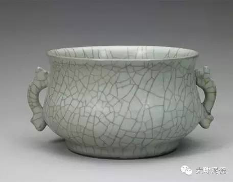 哥窯的主要特征是釉面有大大小小不規則的開裂紋片,俗稱“開片”或“文武片”,這是發生在釉面上的一種自然開裂現象,原本是瓷器燒制中的缺陷,后來人們掌握了開裂的規律,有意識地讓它產生開片,從而形成了一種獨特的美感。細小如魚子的叫“魚子紋”,開片呈弧形的叫“蟹爪紋”,開片大小相同的叫“百圾碎”。