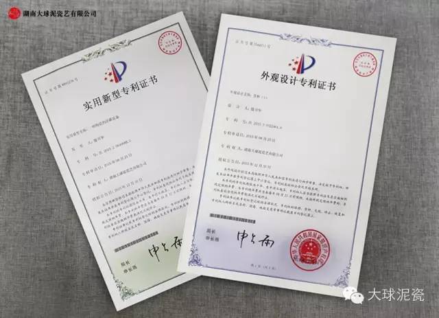 2016年的工作才剛剛開始,大球泥瓷藝便收獲了一大驕人的成績!我司已申報專利近百項,繼2015年通過了三十余項后,今日又有18項獲得批準通過并收到證書,其中包括實用新型專利12項,外觀設計專利6項。內容涵蓋了大球泥瓷獨特的創作設備、燒制窯爐和專屬作品等。大球泥瓷藝出品的每一件作品都打上了“大球泥瓷”的專屬烙印,擁有自己的知識產權,以防假冒、偽造。