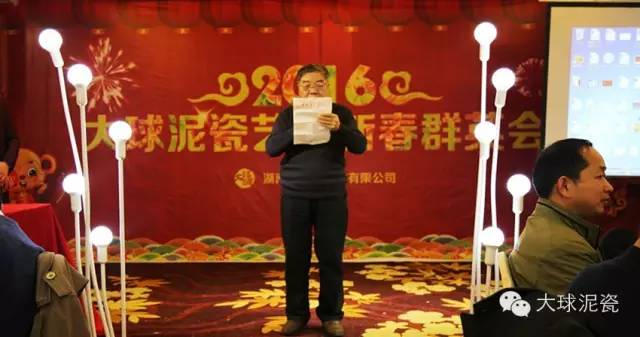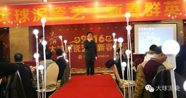 值此農歷新年即將到來之際,大球泥瓷藝為感謝一路以來一直關心和支持我們的各位朋友,于2016年1月16日舉行《大球泥瓷藝·新春群英會》。原計劃舉辦大型新春團拜會,但考慮到大家節前忙于工作,改為舉辦“新春群英會”,邀請了部分嘉賓,有政府相關廳局領導、工藝美術大師、陶瓷收藏家、各類媒體代表和各商會會長代表等百人參加。