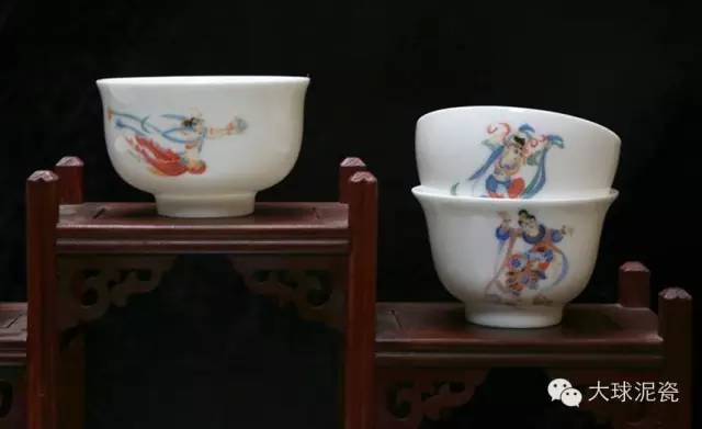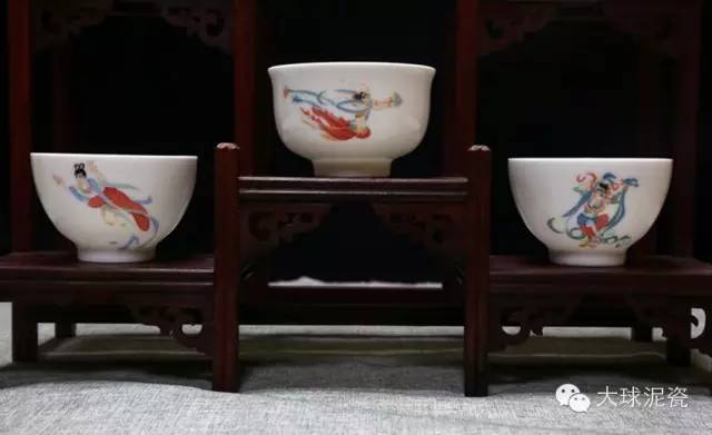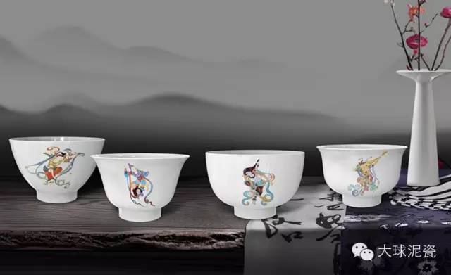 大球泥瓷藝創作的新品——《飛天》品茗杯一組4個,器型、畫面各異,造型規整優美,是第一次在大球泥瓷上以飛天入畫,是將敦煌飛天藝術瑰寶與大球泥藝術瓷融合而成的全新的藝術表現形式。并且,此組品茗杯已申報外觀設計知識產權,是大球泥瓷藝獨有的藝術財富。