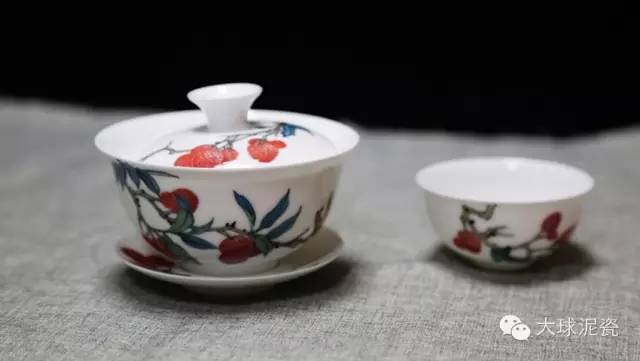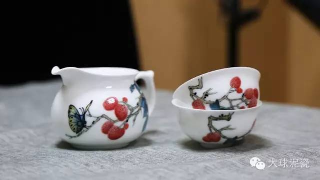 只見杯身上橫枝斜翹,數顆荔枝點綴在枝頭,紅潤而飽滿。蝴蝶翩翩,呼之欲出,增添了無限生機,組成了一幅生趣盎然的自然畫境。