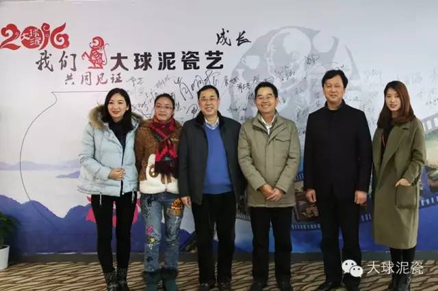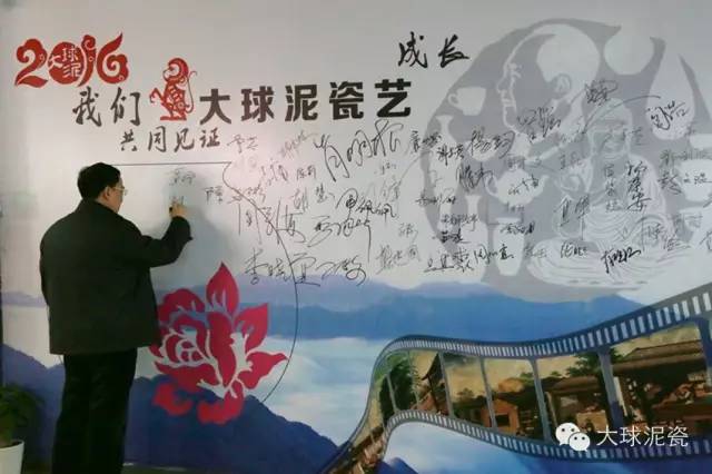 唐主任則表示,大球泥稀缺原料和大球泥高端藝術瓷是我們國家的特色文化產業重點項目。新的一年無論是從政策上,還是資金上,政府都將加大對大球泥瓷藝的扶持力度。期望大球泥瓷藝在2016能夠獲得更加輝煌的成績,他笑稱,今日在簽名墻上寫下的名字,將來便是他見證大球泥瓷藝成長的歷史證據!