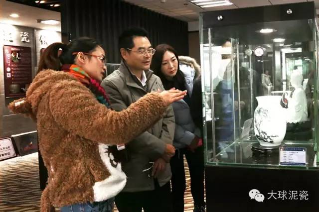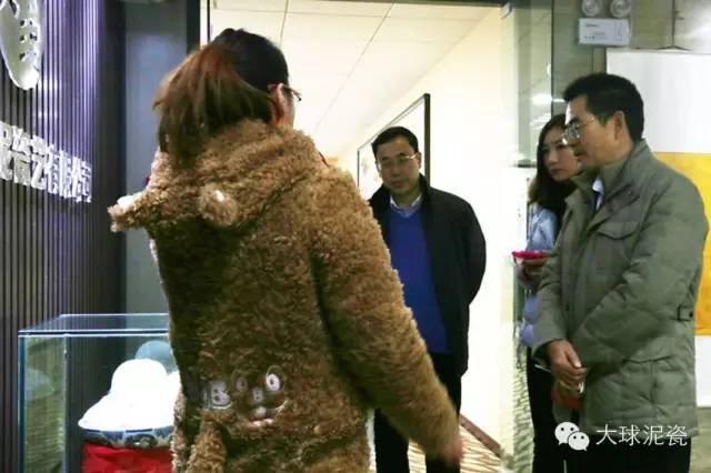 在公司張副總的帶領下,唐主任和劉董首先參觀了大球泥瓷精品展示廳。第一次見到大球泥瓷的劉董瞬間被激發起了強烈的好奇心,一邊認真地觀賞瓷器,一邊仔細地詢問著關于大球泥原料的研究開發,大球泥瓷的燒制工藝和公司未來的發展規劃等問題。
