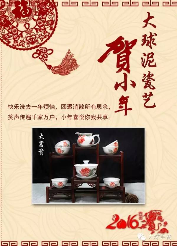 古傳臘月二十四,灶君朝天欲言事。云車風馬小留連,家有杯盤豐典祀。豬頭爛熱雙魚鮮,豆沙甘松粉餌團。男兒酌獻女兒避,酹酒燒錢灶君喜。婢子斗爭君莫聞,貓犬角穢君莫嗔。送君醉飽登天門,杓長杓短勿復云,乞取利市歸來分。今日是農(nóng)歷小年,民間傳統(tǒng)的祭灶日。大球泥瓷藝送上最真誠的祝福,愿您及家人迎祥納福,永遠快樂安康!——大球泥瓷藝敬上