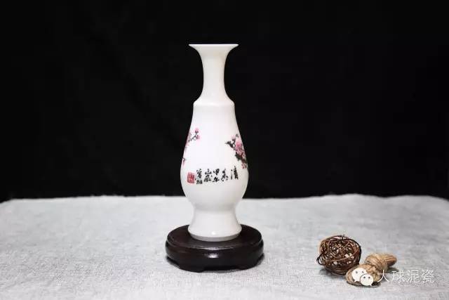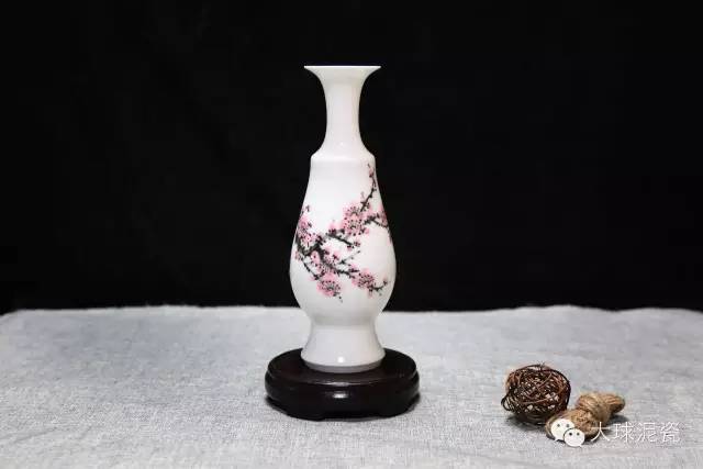 大球泥瓷藝出品的《清香》寶塔瓶,由省級工藝美術大師譚演湘創作,以桃花入畫,圖案色彩清新,筆觸細膩,墨色的枝干、粉紅的桃花、嬌黃的花蕊相互映襯,其釉色清麗,帶給人純凈無暇之感。施釉飽滿而瑩潤,如脂似鏡,以手撫之可以感到十分柔滑細膩,猶如一股清泉直沁心脾,舒心至極!