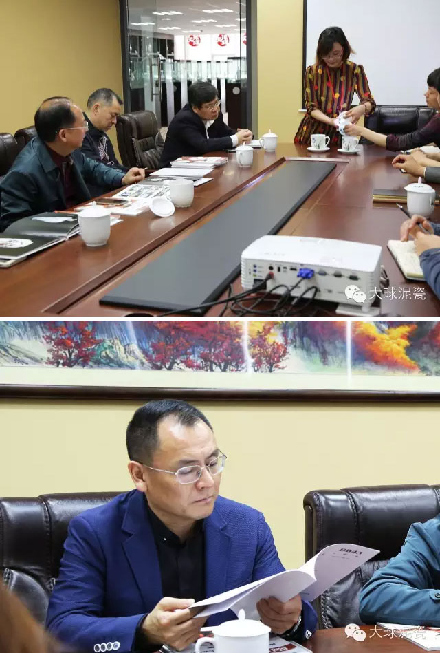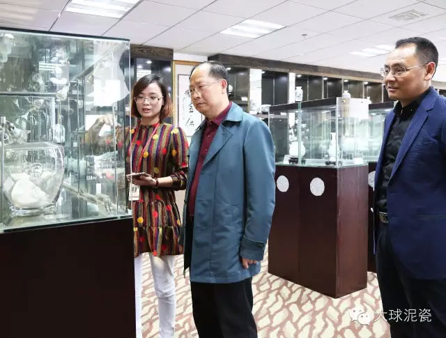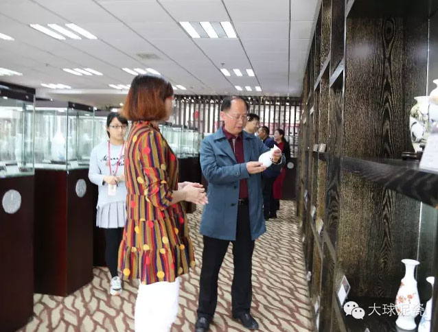 楊部長(zhǎng)一行首先來到展示廳,仔細(xì)聽取了公司副總經(jīng)理張萍對(duì)大球泥原料的形成、發(fā)現(xiàn)、存量以及大球泥瓷特點(diǎn)的介紹,并對(duì)大球泥瓷的經(jīng)典作品逐一進(jìn)行了講解。在會(huì)議室,公司董事長(zhǎng)滕召華從大球泥原料的搶救性保護(hù)、公司的成立、研發(fā)利用、專利技術(shù)、宣傳推廣、未來規(guī)劃以及需要解決研發(fā)中心用地問題等幾個(gè)方面做了匯報(bào)。