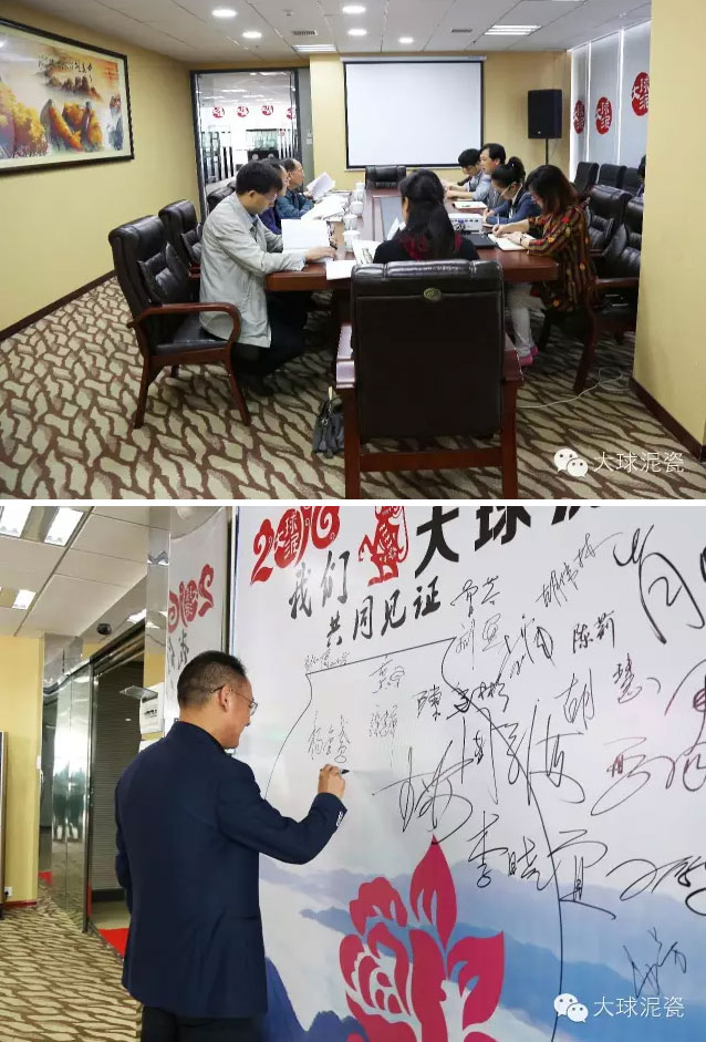 2016年4月12日,中共湖南省委宣傳部副部長(zhǎng)、省文化產(chǎn)業(yè)領(lǐng)導(dǎo)小組主任楊金鳶一行六人到湖南大球泥瓷有限公司現(xiàn)場(chǎng)調(diào)研。隨行的領(lǐng)導(dǎo)還有省文產(chǎn)辦主任陽芳菲、省文產(chǎn)辦副主任胡革平、《新湘評(píng)論》雜志社副社長(zhǎng)胡建軍、副社長(zhǎng)劉少生等。