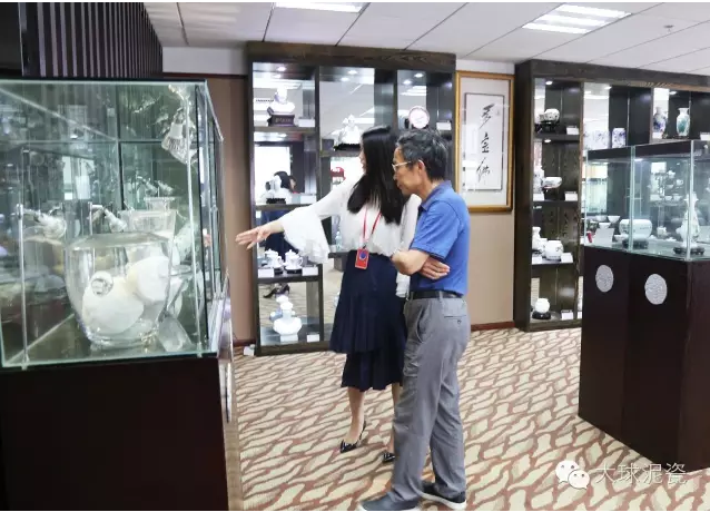 戴理事長一邊認真品鑒展廳里的精美大球泥瓷作品,一邊笑著對陪同參觀的工作人員說:“我雖然是第一次來大球泥瓷藝,但是對大球泥印象很深,這種泥料好珍稀的,還造就了舉世聞名的毛瓷,眼前這些大球泥瓷作品都很雅致,做得不錯,說明你們公司在生產研發上,那是真下了深功夫啊!”