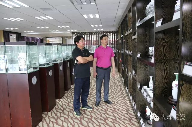 在工作人員的帶領下,伍會長首先來到了大球泥瓷精品展廳,公司董事長滕召華就大瓷泥的起源、形成、研發與創作向伍會長作了詳細的解讀,并明確表示大球泥瓷營銷目標將瞄準國際高端奢侈品市場。