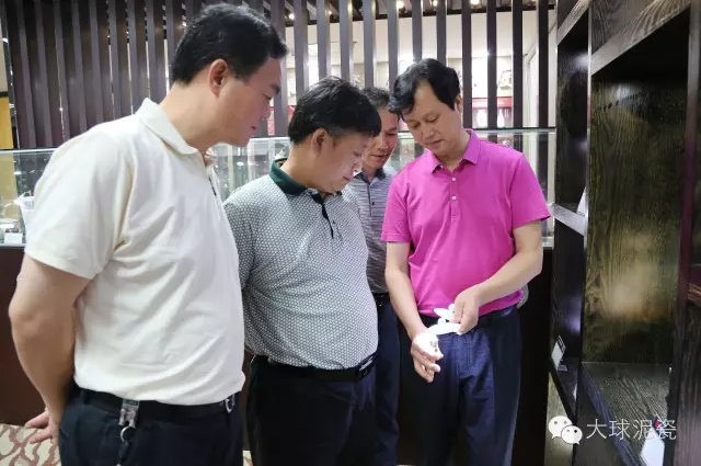 7月14日,湖南省商務廳副廳長、省異地商會聯席會議召集人毛七星、省異地商會聯合會執行會長兼秘書長陳煒、常務副會長劉浪等一行來大球泥瓷藝考察。