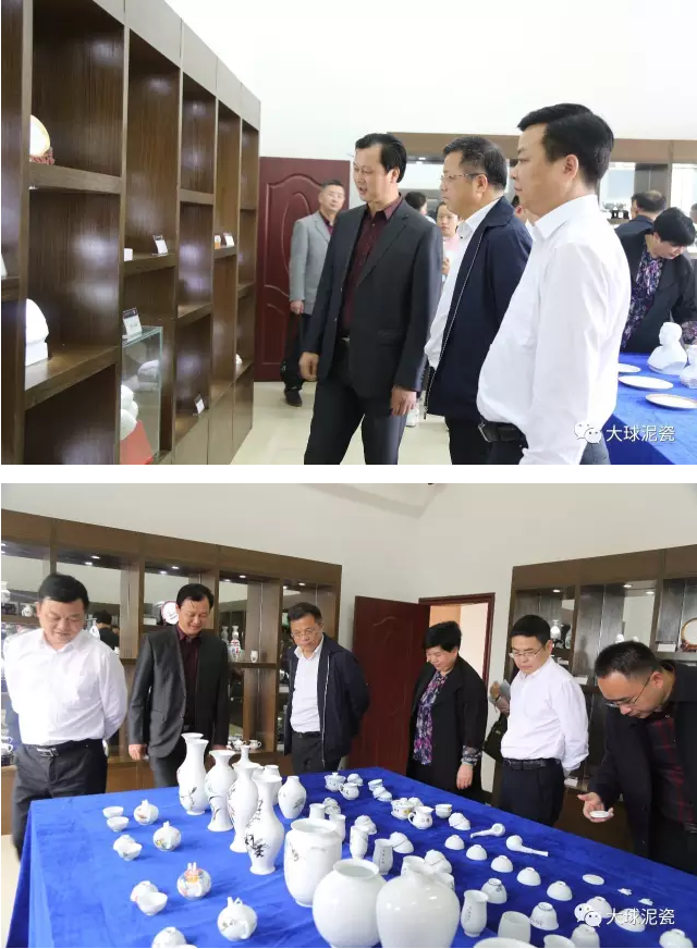 譚校長說,學校已經聘請了一批景德鎮的學者大師到株洲授課,本次考察也是想了解湖南的特色陶瓷企業,尋求“產、學、研”的合作單位。醴陵市委市政府推薦到大球泥瓷藝進行調研,看后眼前果然為之一亮,作為企業做出眾多原料研發工作確實不易,校企合作已具備非常好的基礎。滕董說,只要有機會就一定為湖南工業大學做好教學服務。