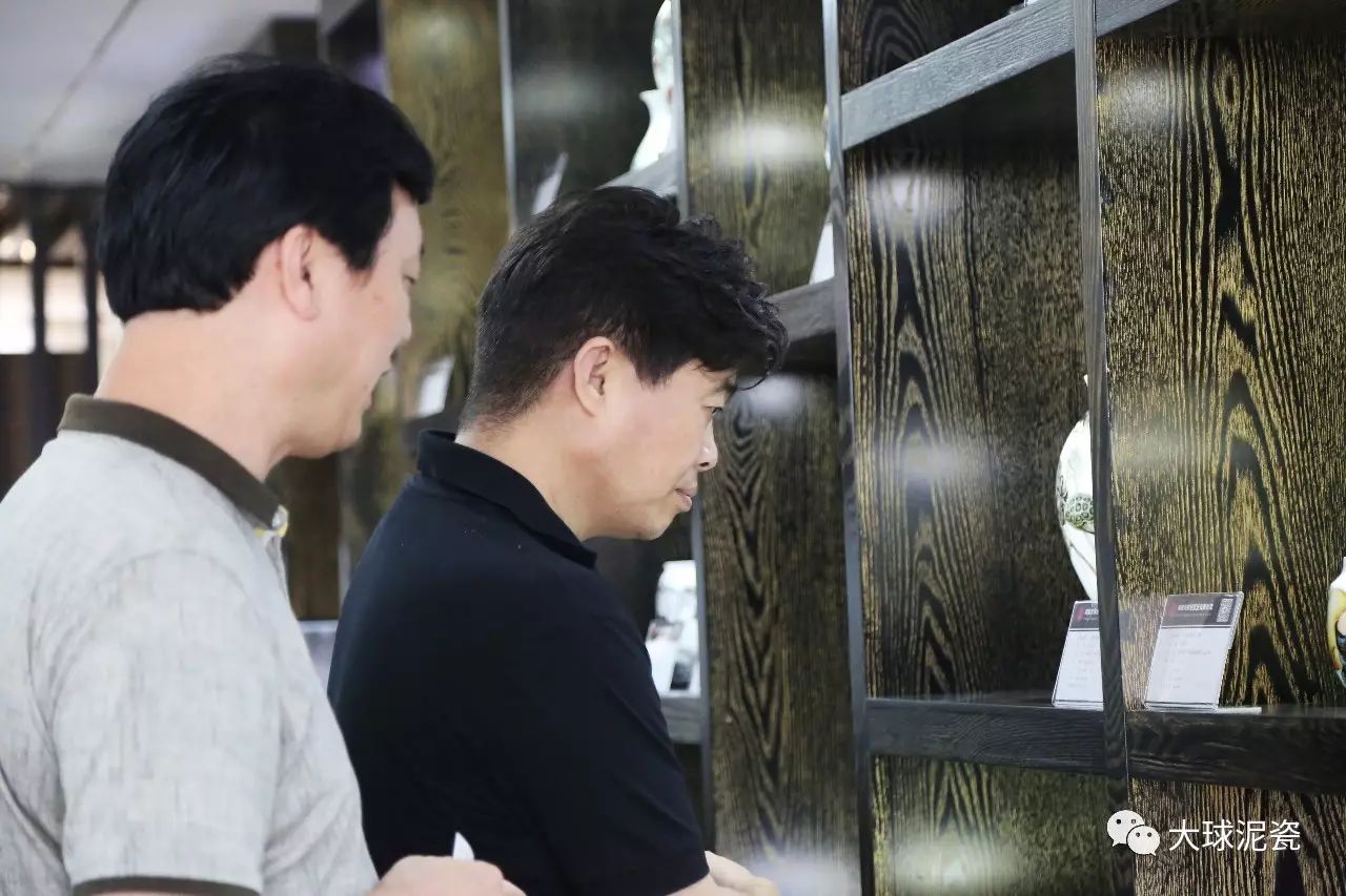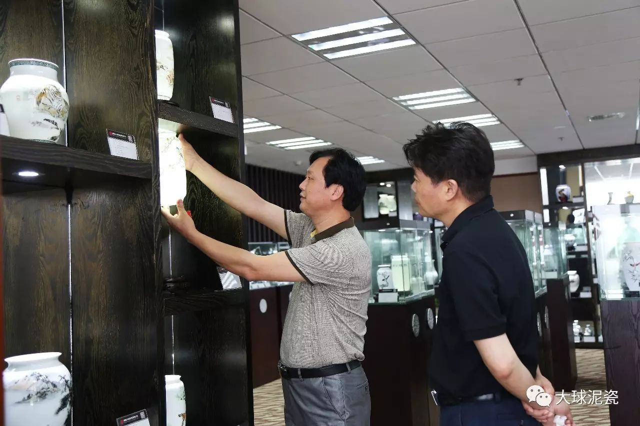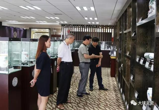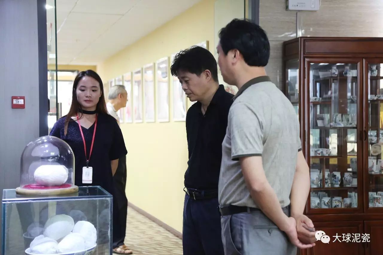 參觀考察后,邱主任認為大球泥瓷極具傳統的湖湘文化特色,又非常符合國家“一帶一路”發展規劃,可作為具有地方特色代表性文創作品走出國門,邁向世界。滕董表示大球泥瓷正朝著國際化發展而努力,今年6月份公司作品已在芬蘭展出,并獲得一致好評。另一原創作品《和平》套具即將在9月份作為聯合國禮品走向國際。