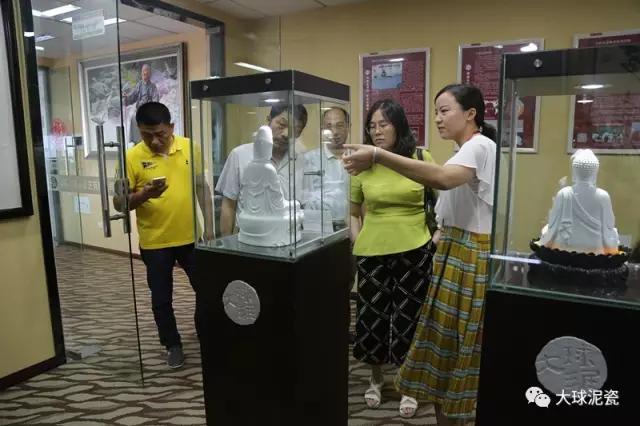 下午,各領導來到了大球泥瓷藝展廳。工作人員對公司核心競爭力大球泥,及大球泥瓷的制作工藝、器具造型、藝術設計等方面做了詳細的介紹。