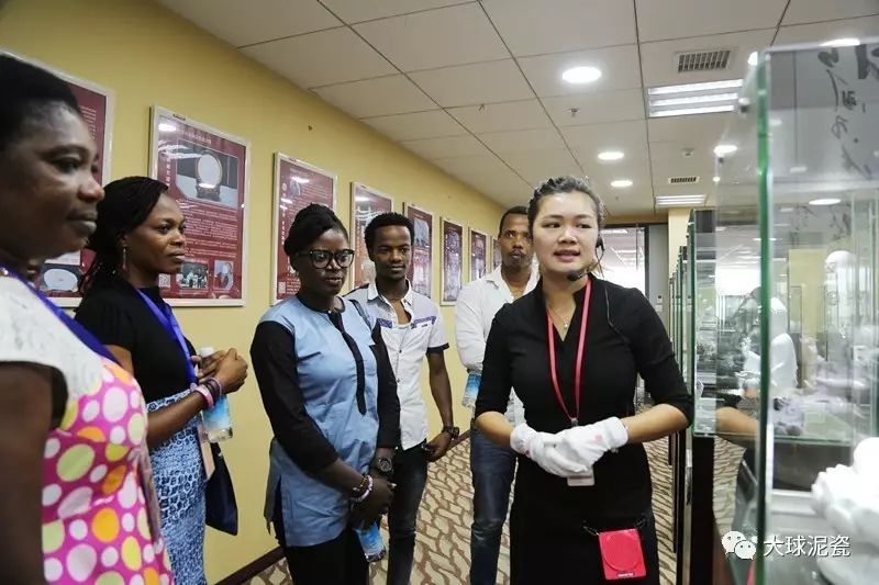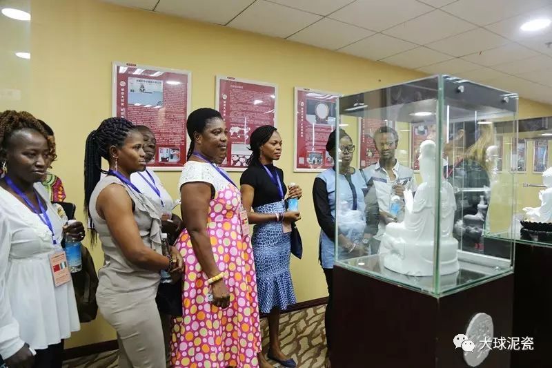 培訓班一行通過觀看宣傳片、座談交流等方式,詳細了解了稀缺珍貴的大球泥以及大球泥瓷的研發創作歷程。現場工作人員通過中、英、法三種語言在展廳內進行了詳細講解,使他們進一步了解中國藝術瓷的代表——大球泥瓷的獨特文化魅力。