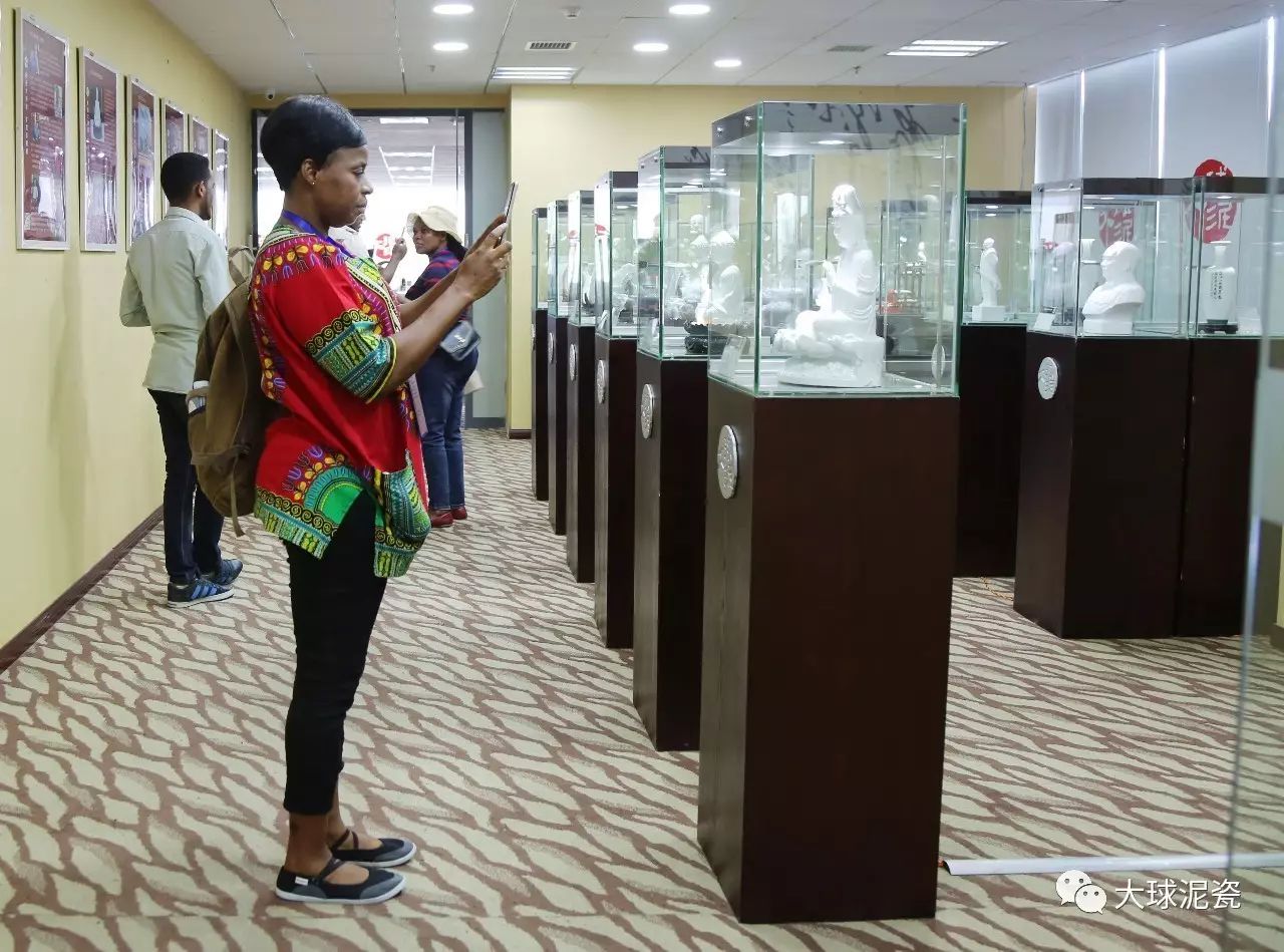 學員們對大球泥非常感興趣,對溫潤如玉的大球泥瓷更是稱贊不已,并表示希望這些瓷器能出口到國外,到他們的國家去。大家現場紛紛與大球泥瓷拍照留影。