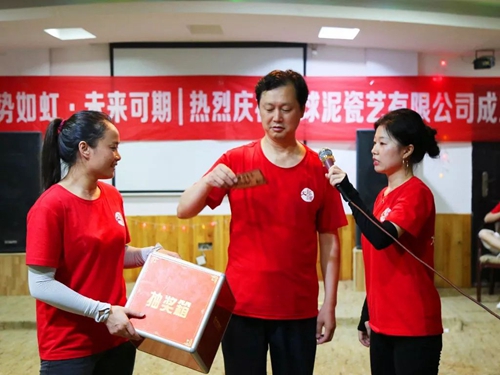 最后的合唱環(huán)節(jié),大家齊唱司歌“遇見(jiàn)大球泥”。優(yōu)美的旋律,精煉的歌詞,凝聚了大球泥瓷藝人的創(chuàng)業(yè)精神,濃縮了大球泥瓷藝的工藝智慧,大家都深深沉浸在唱響美好未來(lái)的氛圍中,合唱結(jié)束,都難以自拔。