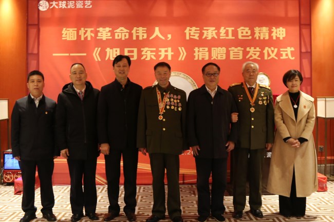 本次活動由湖南大球泥瓷藝有限公司與韶山旅游發展集團共同主辦,由大球泥瓷藝營銷總監姚衛主持。滕召華董事長首先說,在偉人誕辰紀念日捐贈《旭日東升》意義非凡,公司成立七年,一直在講好中國故事、傳播紅色文化。這款《旭日東升》以已故著名雕塑家張松鶴創作的毛澤東主席浮雕為原模、以毛澤東故居為背景再創作,全球限量發售2019枚。隨后,滕董事長鄭重地將編號為0001的《旭日東升》作品呈遞給韶旅集團李飾峰老總手中。李總發言表示感謝,他說大球泥瓷藝公司很有大愛,這幾年一直堅持捐贈,一直在用藝術作品弘揚偉人精神、傳播紅色文化。