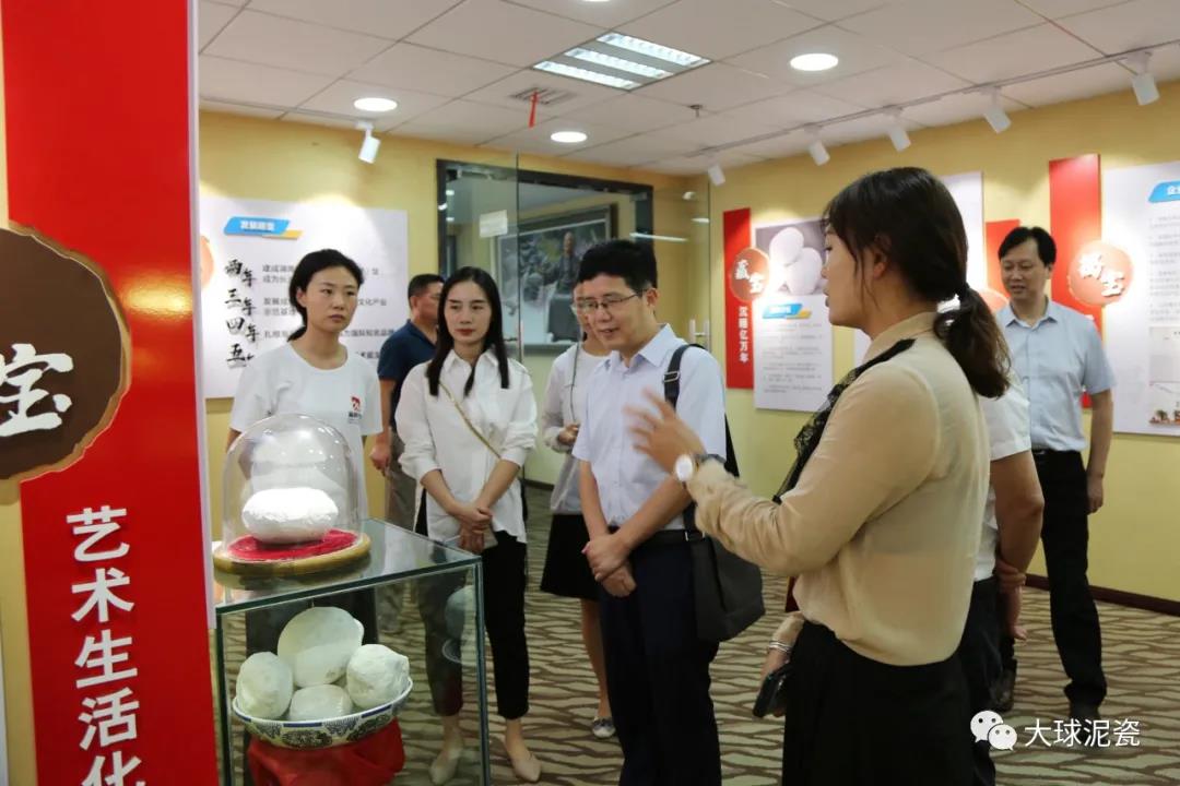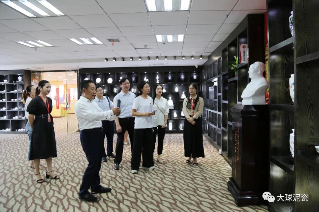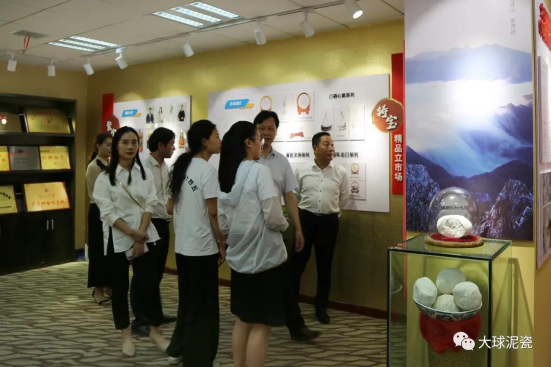 調(diào)研組一行首先參觀了公司精品展示廳,副總經(jīng)理姚衛(wèi)作專業(yè)講解。大家親眼目睹這種被業(yè)內(nèi)稱為“泥黃金”的雪白球狀,就是當(dāng)年承造“毛瓷”的神奇原料時(shí),深深為滕總的遠(yuǎn)見卓識(shí)所折服。看到琳瑯滿目的高端藝術(shù)瓷,或駐足欣賞,或手機(jī)拍照,或在燈光下進(jìn)行比較,親身感受大球泥瓷與眾不同的“白、潤(rùn)、透”藝術(shù)效果。在姚總的引導(dǎo)下,調(diào)研組成員仔細(xì)欣賞每個(gè)作品,了解其蘊(yùn)含的獨(dú)特匠心故事及文化底蘊(yùn),感受陶瓷文化的獨(dú)特魅力。“大球泥,人間璞玉”,王鵬先生四年前就送了一句出彩的廣告詞。