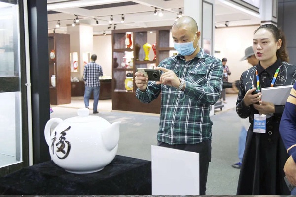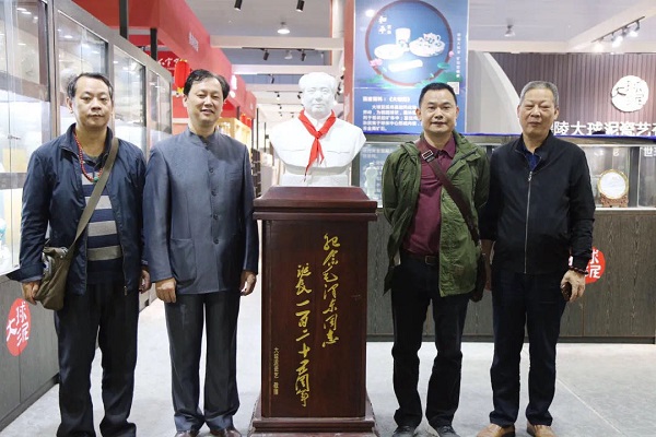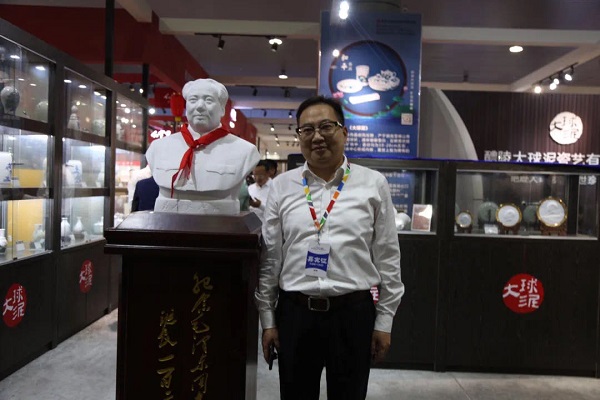 在本次瓷博會上,大球泥瓷藝展出的新品《富貴人家》特大壺、《為人民服務》毛主席半身像最吸人眼球、成為網紅打卡地。