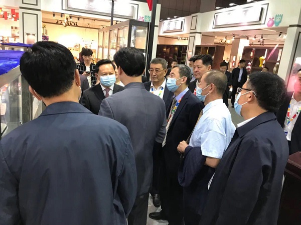 緊接著,湖南省委常委、統戰部部長黃蘭香,株洲市委書記毛騰飛、市長陽衛國、政協主席蔡溪、副市長楊英杰,省僑聯書記黃芳,省文化和旅游廳副廳長高揚先等一行到大球泥瓷藝巡館。黃部長十分關心大球泥原料的儲存量和已用量,詢問企業的經營狀況。滕董報告了大球泥限量使用每年不超過一噸,重點用于高端藝術瓷創作,目前重點在把陶瓷藝術品應用于公共文化藝術工程,同時也在與國家有關部門做毛瓷現象與產業升級的課題研究,以此帶動我省陶瓷產業的高質量發展。
