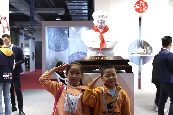 “這個人物浮雕杯有亮點”。《為人民服務》浮雕杯成為本次展會爆款,這一工藝技術的創新,把紅色文化和藝術生活化做到了有機統一。