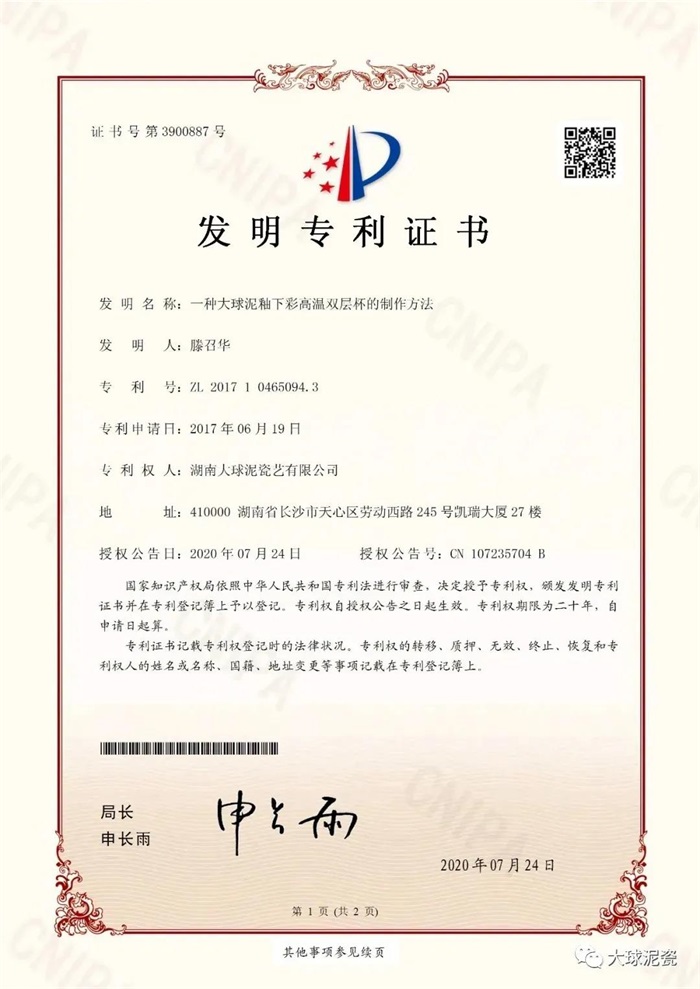 公司作為我國高端藝術陶瓷引領者,在陶瓷材料研發、工藝技術改革、作品融合創新、制訂行業標準等方面一直在努力,也非常注重知識產權的維護,營造行業良好的市場環境。2020年醴陵某藝術瓷公司被判賠我公司25萬余元,另外一家陶瓷公司的侵權行為公司正在維權。