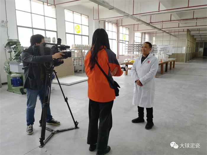 3月17日上午,醴陵電視臺派員到大球泥瓷(醴陵)生產基地,報道《千秋偉業》大型高溫浮雕瓷板的創作生產進度,公司董事長、正高級工藝美術師滕召華現場接受了電視臺記者的專訪。