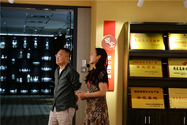 7月9日,全國人大代表、湖南省人民政府參事、省出版集團原董事長龔曙光到訪大球泥瓷藝,就我省藝術陶瓷產業發展狀況調研。-