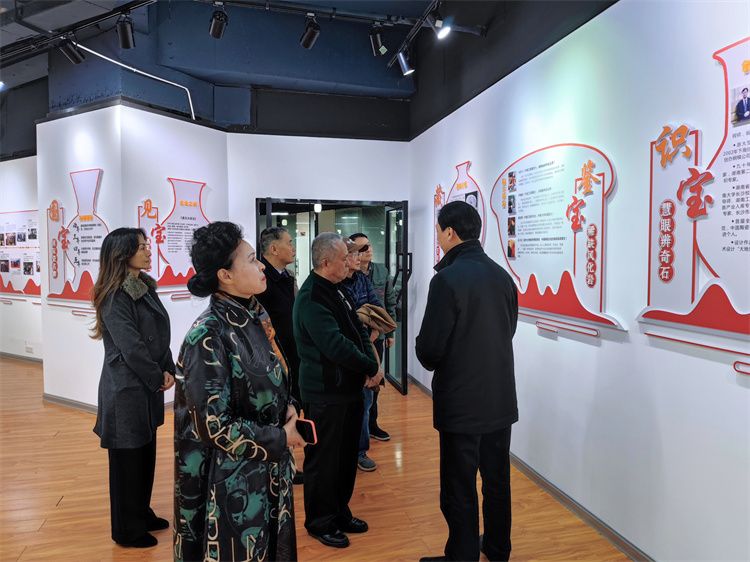 在董事長滕召華引領下, 袁大使一行參觀了企業文化展廳,從“藏寶——鑒寶——識寶——煉寶——鑄寶”等方向作了言簡意賅介紹。袁大使對于滕董守正創新、敢為人先,做“大球泥瓷”標準表示贊賞,對公司將傳統藝術陶瓷創新融入北京地鐵公共藝術工程相當認可。