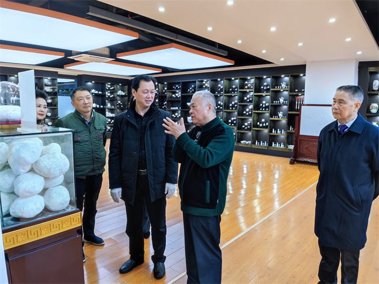 3月25日,中國外交學院原黨委書記、中國駐蘇里南共和國大使館原大使袁南生到訪大球泥瓷藝,省委宣傳部原外宣辦副主任、省國際文化交流中心主任蘇璇,省機關事務管理局原巡視員宋軍,省委黨校圖書館原館長汪太理,長沙大紅陶瓷總經理尹彥征,大公網湖南頻道總編輯李林等陪同考察。